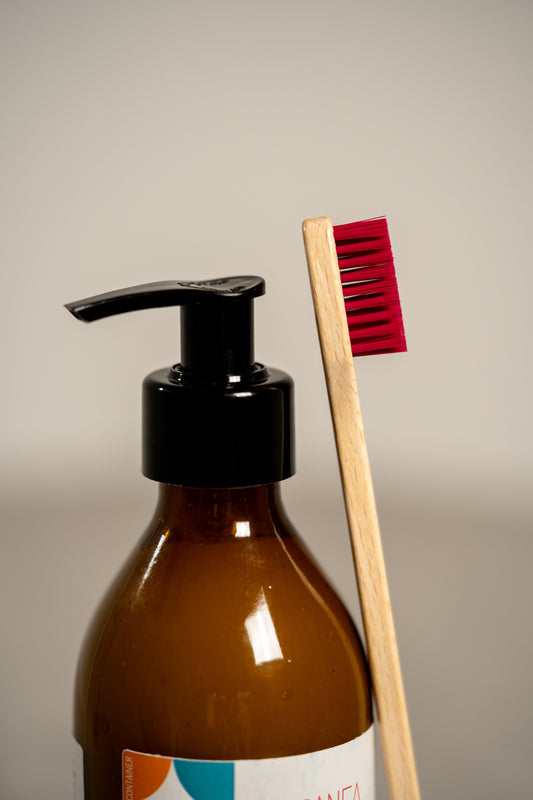 Wooden toothbrush for adults, natural bristles, plastic-free